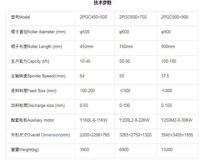 双齿辊破碎机技术参数: